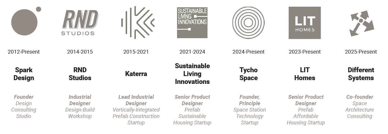 My professional work centers on product and system design for industrialized construction. I currently work as a Senior Product Designer at LIT Homes, developing scalable prefab housing products that balance cost, performance, and manufacturability. Previously, I worked at Katerra and other design-driven startups, helping build vertically integrated building systems from concept through production.